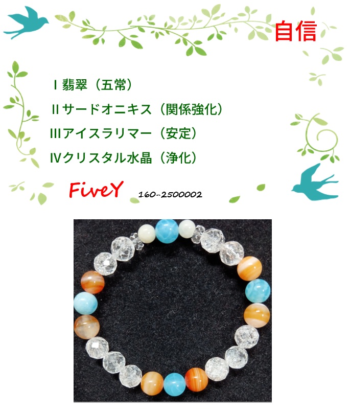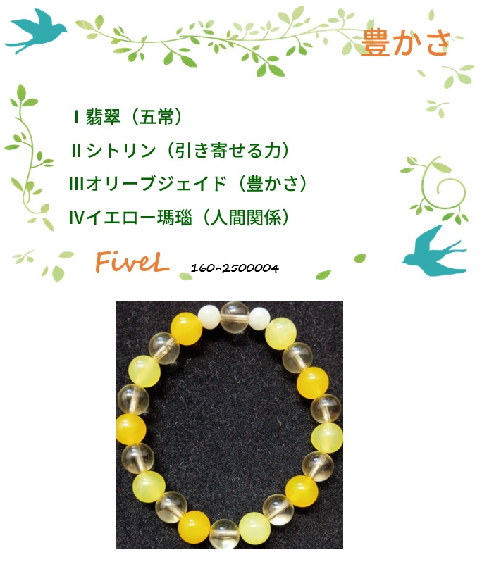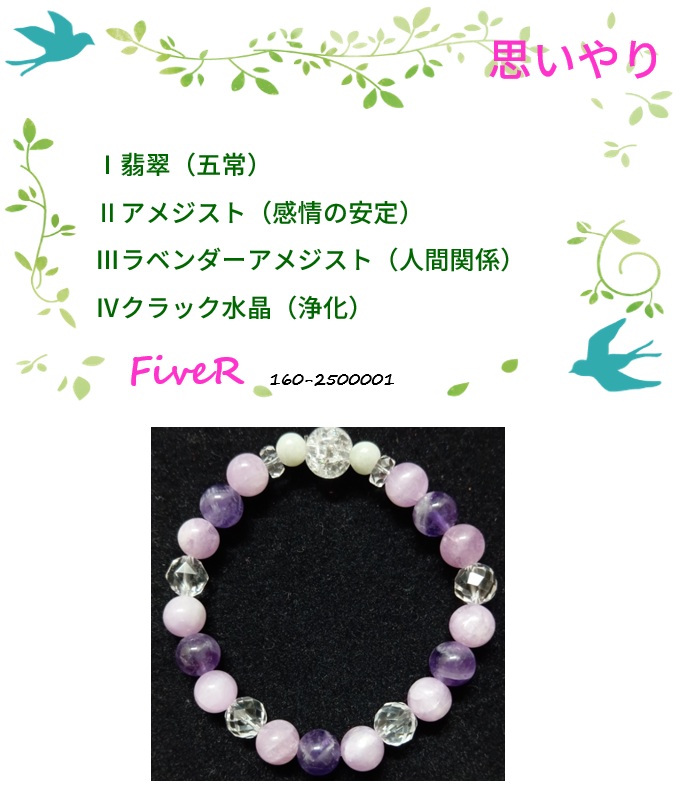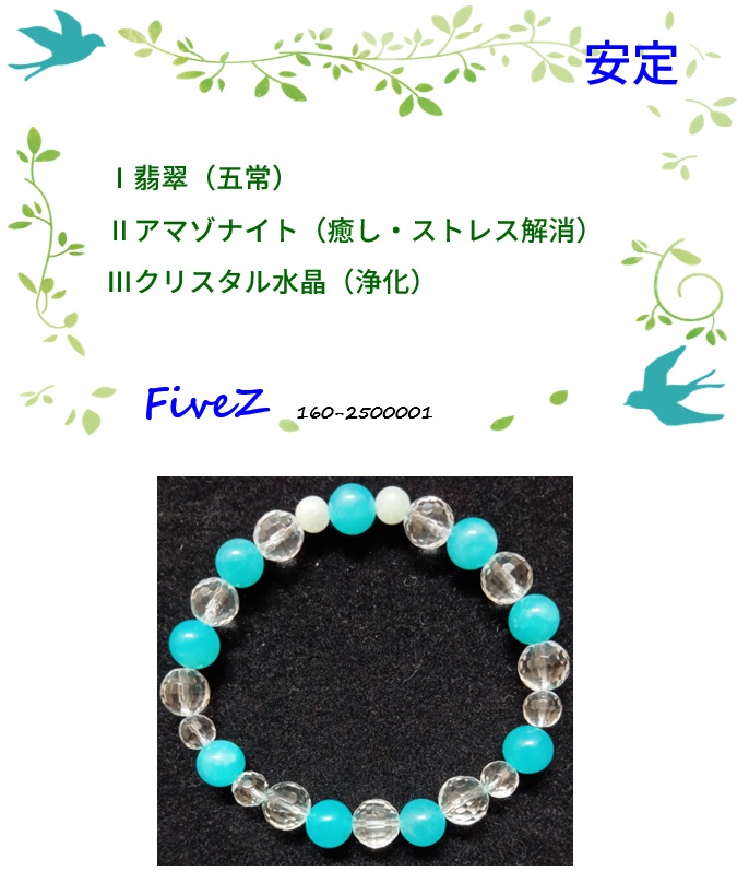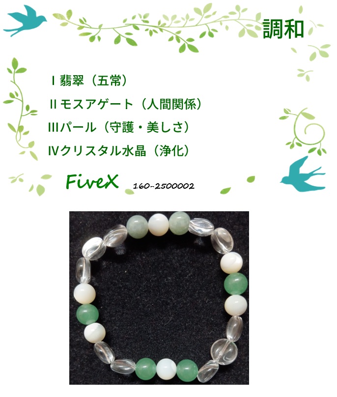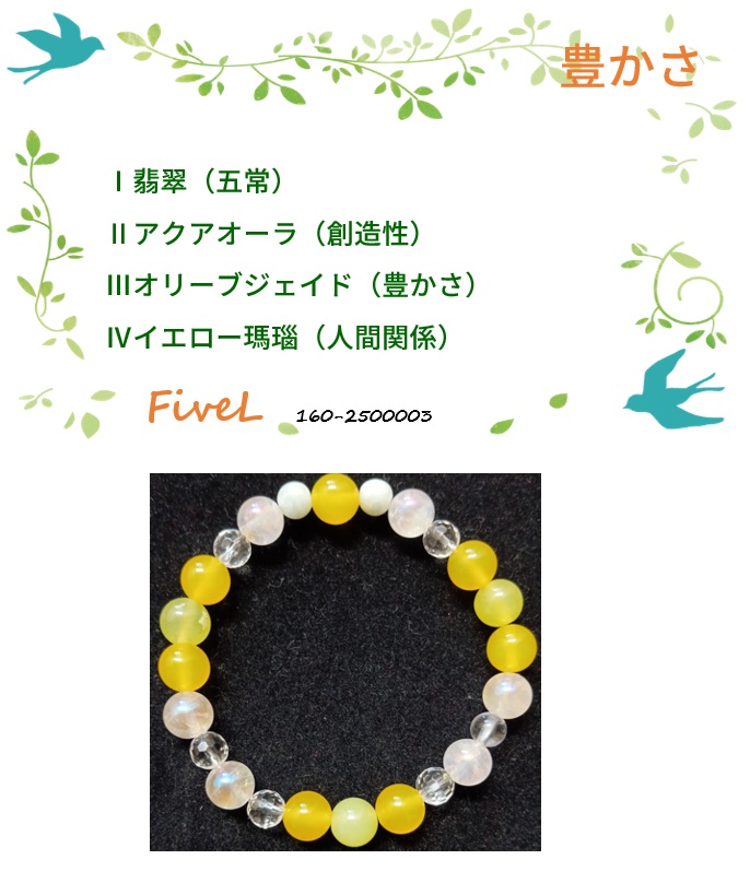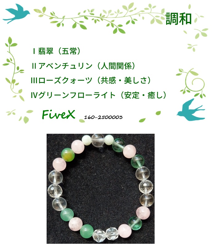 - 厳選した品質の良い天然石を、5つの思い(思いやり、調和、自信、安定、豊かさ)に分けて、一つ一つ丁寧にお作りします。世界で一つ、オーダーメイドも可能にしました。